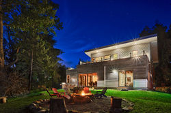 Set on the banks of the Credit River overlooking a Set on the banks of the Credit River overlooking a flood plain and sheltered by a forested escarpment on the north, this house experiences an unusual micro climate, described as tropical in the summer and frigid in the winter. Unpeeled logs columns harvested directly from the site support Douglas Fir beams at the entrance porch and in the dining room. The remaining lumber was formed into stair treads. Three-inch-wide hemlock roof joists support an exposed and unfinished plywood deck. Polished concrete floors are heated by a hot water boiler, with secondary heat provided by a small but efficient wood stove.